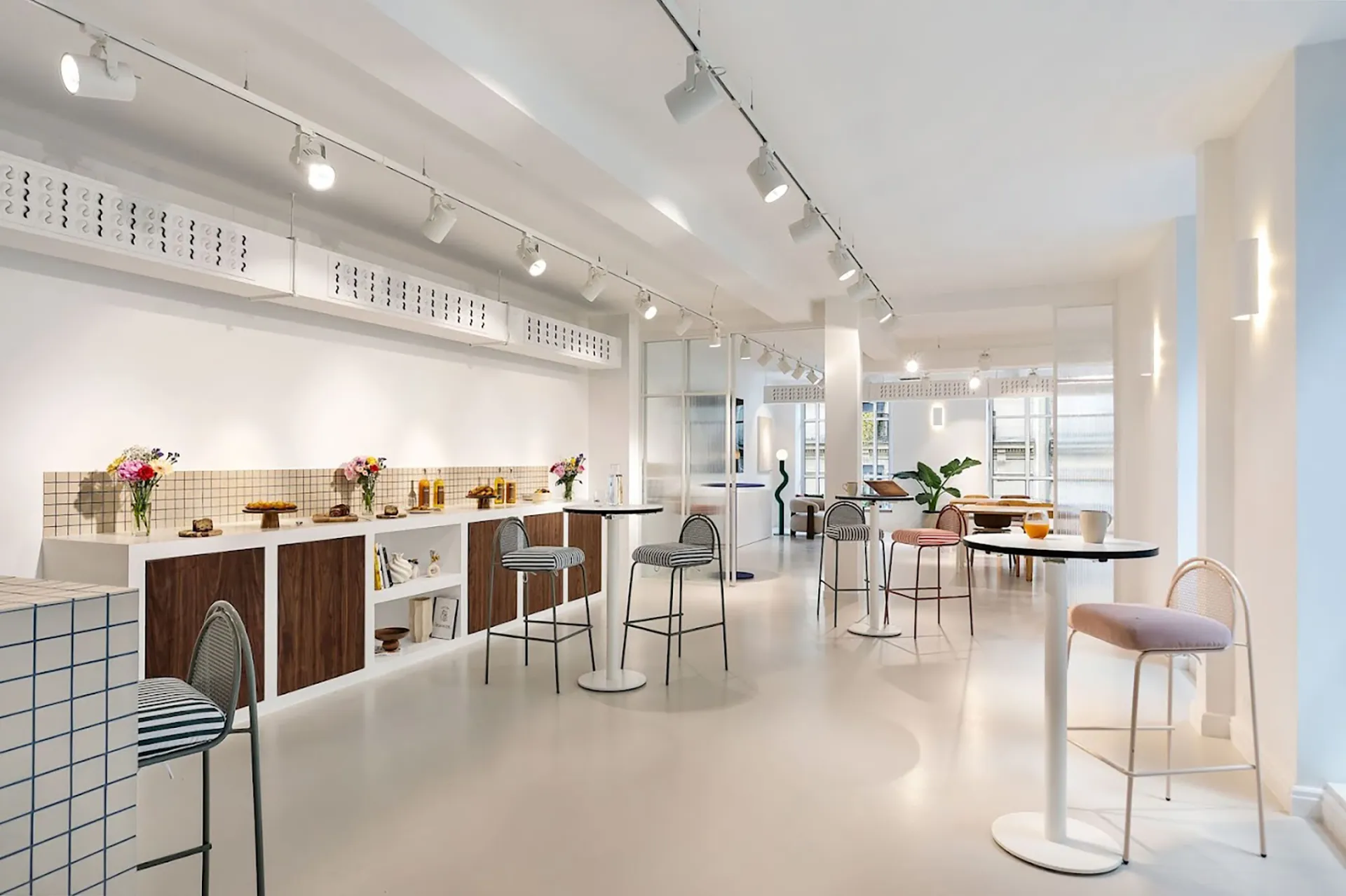 J’ai accompagné la création de la signature visuelle du lieu, en imaginant une identité spatiale cohérente et lumineuse. J’ai dessiné les verrières intérieures, pensé le space planning global et réalisé les plans 2D définissant les espaces : un salon, un espace détente, un espace de réunion et de conférence, un espaces de sous-commission, une cuisine office traiteur pensée pour les événements.