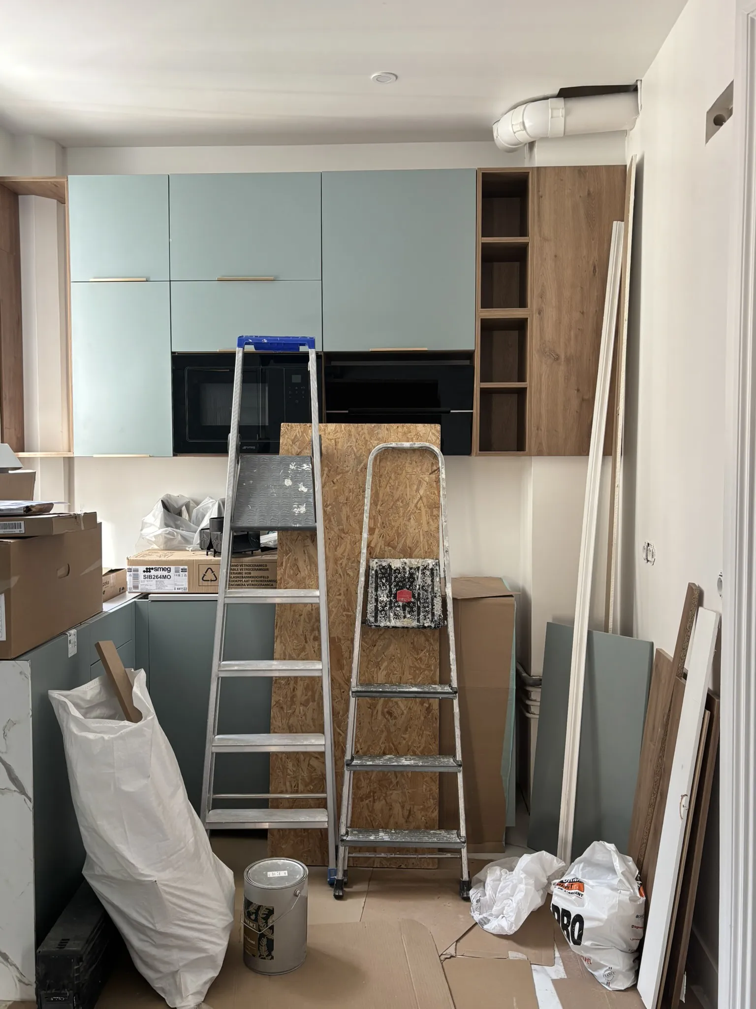 Je suis intervenue pour la rénovation d’un appartement parisien : repenser les volumes, révéler le potentiel pour créer une cuisine et un salon.